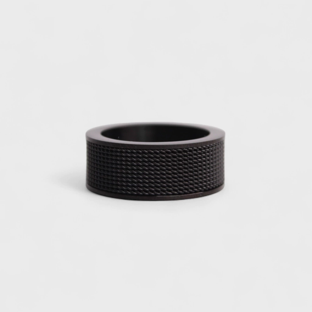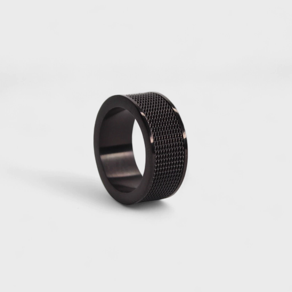 Um anel de forte presença, feito para homens que desejam um acessório que reforçe um visual de valor. Seu design pontilhado e seu formato mais largo são os destaques desse modelo.